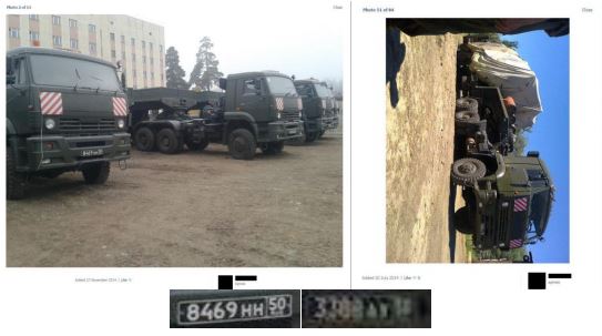В альбомах различных пользователей сообщества можно найти и фотографии тягачей из июльской колонны с "Буками", например 8469НН50 и 3388АУ50. Фото слева загружено 27 ноября 2014 года, справа – 20 июля (на нем на прицепе стоит закрытая брезентом техника). Оба этих "КамАЗа" присутствовали на видео июльской колонны с "Буками", в котором также перевозился "Бук" 3Х2, предположительно причастный к катастрофе "Боинга":