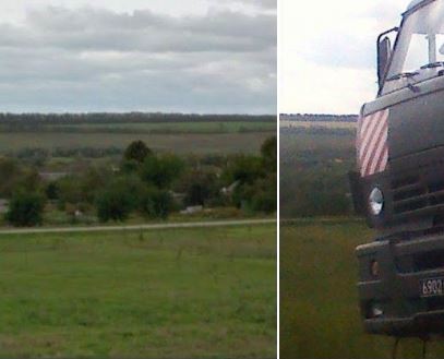 Определить, где был сделан снимок, довольно сложно. Основываясь на известном нам маршруте колонны и на географических местах фотографий этого же пользователя, сделанных немногим ранее, мы пришли к выводу, что фотография "Бука" 232 и стоящего за ним "Бука" №3Х2 c открытой фарой сделаны на трассе Р185 Белгород – Россошь около села Варваровка Белгородской области. Мы изучили снимки этой местности в сервисе Google street view. Несмотря на то что нимок Google сделан в 2013 году, а "Бук" проезжал здесь в 2014-м, место, где он сделан, удалось найти по сохранившимся характерным следам ремонта асфальтового покрытия дороги: