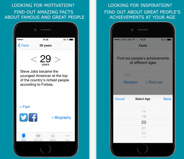 С помощью Hurry2Live – бесплатного мобильного приложения для iOS можно найти интересные и вдохновляющие факты о достижениях знаменитых и великих людей в разные годы их жизни.