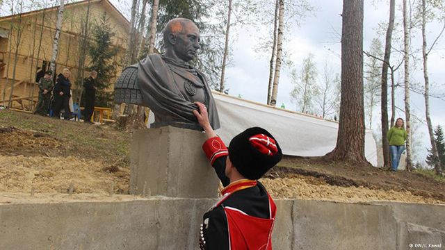 According to Deutsche Welle’s Ilya Koval, who attended the unveiling ceremony on May 17, the bust was supposed to be made of bronze, but was ultimately constructed of less valuable metals.