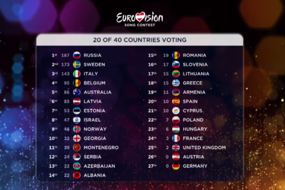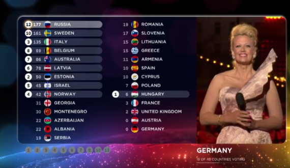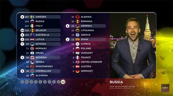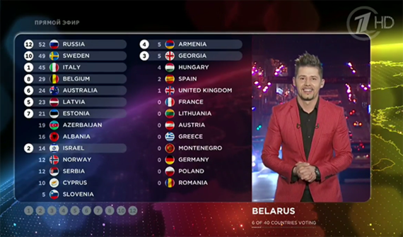 А теперь Россия! 8 баллов шведам, 10 Бельгии — они клевые!!!
