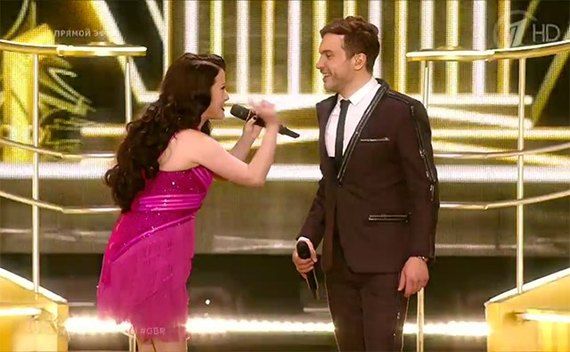 По Первому обстоятельно рассказывают про Полину Гагарину — ее платье готовят часами к выступлению, девушка изрядно волнуется. У Полины действительно неплохая песня с хорошим посылом — про то, что все люди разные, но едины, хотят добра и мира. Как будто не из России песня!