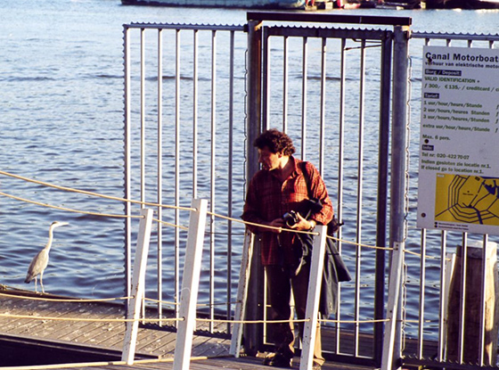 © Екатерина Дробязко-Парщикова Алексей Парщиков, Амстердам, 2002 Ищущий восхищений хрусталик, настроенный на чудо видоискатель продлевали его строчку. Алеша говорил, что, посвящая кому-то стихотворение, он думает о деперсонификации ситуации, об ощущениях вокруг, — но, безусловно, есть адресаты и внутри произведения. Увлекательно искать ландшафты и разговоры вещей, перешедшие из съемок и зашифрованные в его стихах: «Я занимался чуть-чуть фотографией из денег и несерьезно, когда было немыслимо появляться в журналах литературных. Однажды на Каменном мосту, болтаясь без дела с друзьями, я обнаружил определенную точку и с тех пор расставлял группы туристов перед “трояком”, т.е. на той небольшой площадке в первой трети моста, если идти от Замоскворечья, откуда открывается панорама, воспроизведенная неизвестным мне дизайнером на советской трехрублевой купюре. Это совсем узкая территория на мосту: чуть сдвинешься — и вышел из трояка, вернешься на место — снова попадаешь словно в реальный денежный мешок. Карточки выходили со стебом. Туристы не подразумевали, какой забавный план у них за спиной, а я развлекался» [1].