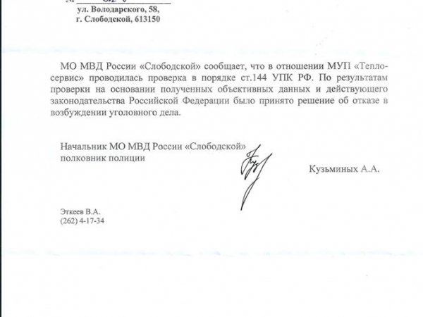 Полиция не обнаружила “Золотого”мазута. Дело закрыто. Не обнаружила нарушений при проведении тендера на поставку мазута и прокуратура. Наличие коррупциогенных факторов, которые по мнению прокуратуры содержатся в принимаемых МУП "Теплосервис" документах- это еще не факты коррупции, не свидетельствуют о ней, а только лишь о несовершенстве документов.Отказ от поставок мазута привел бы к срыву отопительного сезона в Слободском, чего ,как видимо, и добивалась оппозиция- и как следствие-возмущению народа.