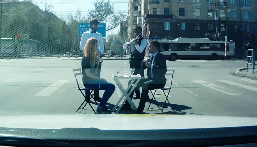 A taxicab company in Chelyabinsk has filmed three elaborate hidden-camera stunts as a part of an unusual new advertising campaign. In the commercial, which now has more than 108,000 views on YouTube, three different passengers are presented with three options for their ride: “romance,” “fast and furious,” and “adventure.”