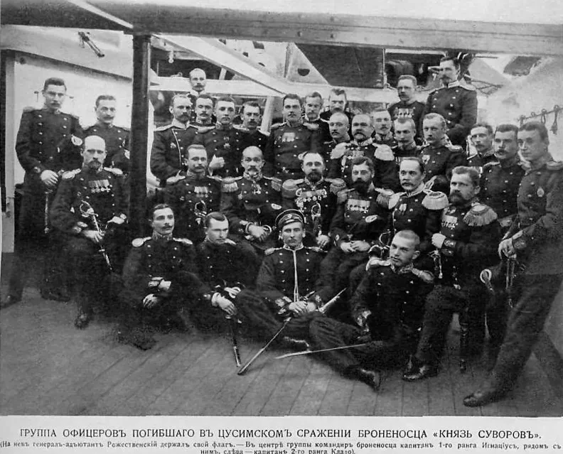 «Русские проиграли в тактике и технике, но не в боевом духе, — пишет историк Масатака Исэ. — Большинство их кораблей сражались до самой гибели: белый флаг подняли только пять». Вот лишь один пример: флагман «Суворов» по состоянию на 16.20 пылал от кормы до носа, у него были разбиты орудия, нарушена система управления. Но корабль пытался маневрировать и отстреливался из единственной оставшейся 75-мм пушки в кормовом каземате. Обреченный броненосец отражал атаки до 19.29, когда разъяренный его упрямством Того бросил на «Суворова» группу миноносцев, которые добили его четырьмя торпедами в упор. На трех затонувших при Цусиме новейших броненосцах «Бородино», «Князь Суворов» и «Александр III» погибли все матросы и офицеры — 2700 человек.