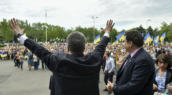 Петр Порошенко и Михаил Саакашвили в Одессе После столкновений мая 2014 г. в России некоторые радикальные политики открыто призывали отправить туда вооруженные силы, чтобы "защитить" русскоязычное население и заодно обеспечить коридор к Приднестровью, которое зажато между Молдовой и Одесской областью Украины. Но десанта российских войск в Одессу в итоге не произошло.