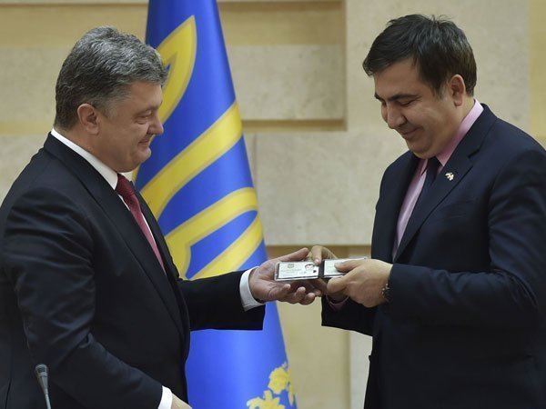Петр Порошенко и Михаил Саакашвили в Одессе Несколько месяцев назад, в середине февраля, Петр Порошено назначил Саакашвили своим советником. Тогда бывший грузинский президент говорил журналистам, что к госслужбе не готов, поскольку не собирается вступать в украинское гражданство — по закону сразу после получения паспорта иностранного государства Саакашвили теряет гражданство Грузии.