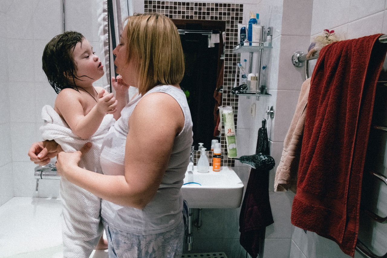 Сейчас Ленусе пять, и она еще не начала говорить. С ней очень легко и хорошо — она невероятно комфортный человек. Но все время думаешь — она должна говорить, ты должен заниматься, ты должен то, ты должен се. В этом просто утопаешь. А если не сравнивать, воспринимать как отдельного человека, который живет своей жизнью на своей скорости, по своим возможностям, то все просто прекрасно. Тем более, всегда есть те, кто помогут. «Даунсайдап» пришли сразу же. Приходила прекрасная педагог Татьяна — она приезжала заниматься с Леночкой, но самое главное было то, как сильно ее визиты поддерживали меня. Настоящая психотерапия.
