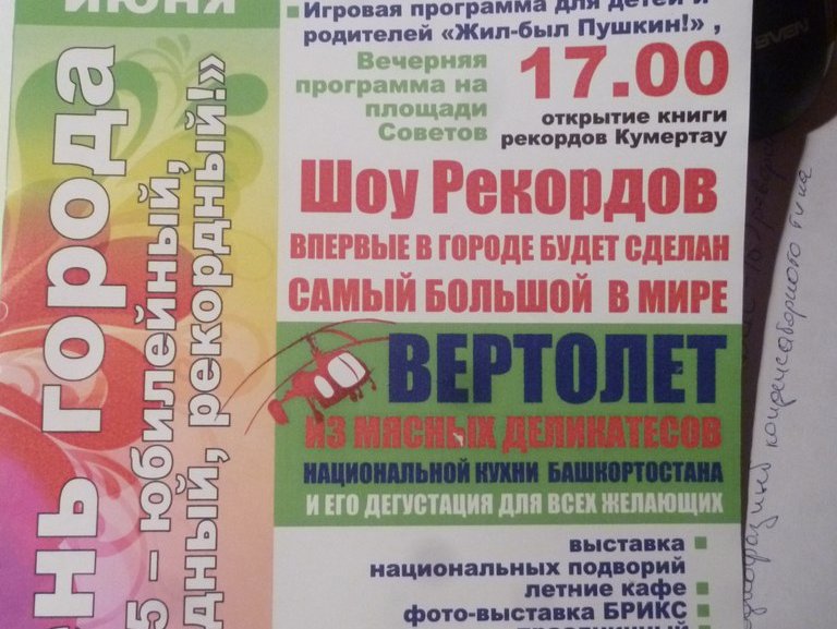 В башкирском Кумертау будет построен вертолет из мясных деликатесов. Об этом сообщает The Urban Room.