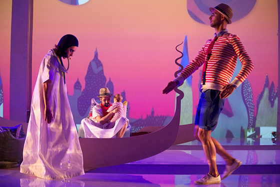 — От музыки. Юхананов внимательно прислушивается к насыщенности музыкальной ткани и в соответствии с ней выстраивает динамику сценического действия — стараясь не перенасытить, как мне кажется, внимание зрителя и слушателя. То есть в эпизодах, где, условно говоря, написано много музыки, на сцене происходит минимальное количество событий, что дает возможность максимально погрузиться в музыку. По сути, он работает с музыкой как с живым персонажем, давая ему возможность проявиться. Надо сказать, что режиссерское решение в своей целостности просматривается именно в развитии цикла, в переходах от оперы к опере. Еще на этапе создания партитур художник Степан Лукьянов встречался с каждым композитором, показывал эскизы, задавал вопросы о распределении персонажей на сцене. И для каждой оперы он сделал некие модификации сценографии, которые символически между собой связаны, но являются уже новой визуальной ситуацией с элементами воспоминания о предыдущих. Последняя опера, по мысли Юхананова и Лукьянова, оказывается как бы внутри первой: если в начале по сцене скользят гондолы, переправляющие сверлийцев из одного мира в другой, то в финале весь зал вместе с музыкантами и хором помещается внутрь гондолы и плывет то ли по Сверлии, то ли по Земле.