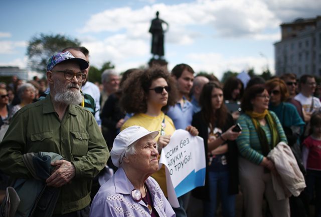 В Москве 6 июня прошел митинг в поддержку науки и образования — непосредственным поводом для него стало недавнее признание благотворительного фонда «Династия» «иностранным агентом». Президент фонда Дмитрий Зимин, возмущенный этим решением Минюста, решил прекратить финансирование организации и, по некоторым данным, уехал из России. Фонд «Династия» долгие годы помогал грантами молодым ученым, финансировал издание научно-популярной литературы и премию «Просветитель»; многие исследователи и общественные деятели были возмущены произошедшим с «Династией». На акцию в итоге вышли более трех тысяч человек — они не только критиковали власть, но также предлагали объединяться в новые организации. Специальный корреспондент «Медузы» Илья Азар выслушал речи видных ученых и пообщался с участниками митинга.