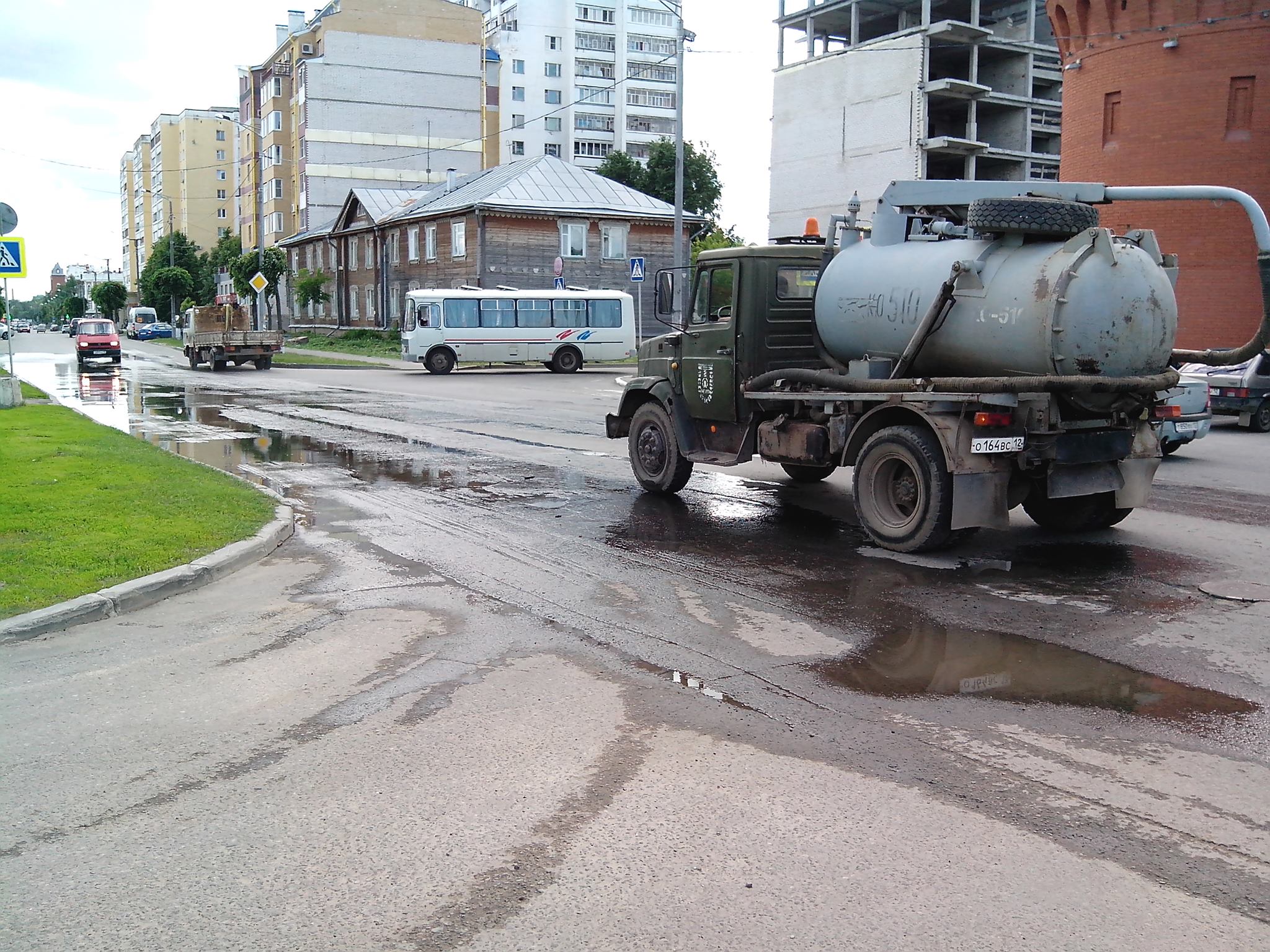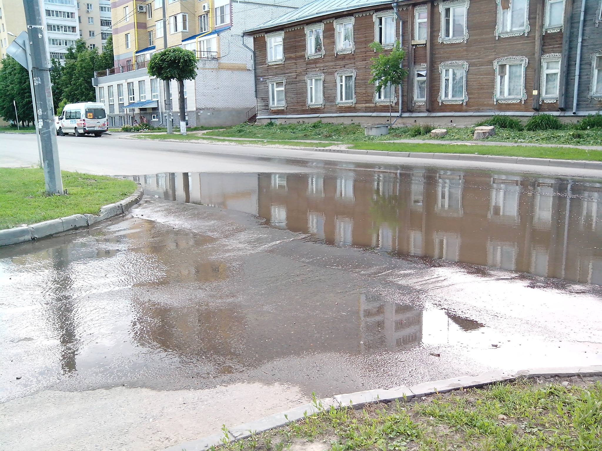 Водоканал у нас богатый, и воду просто выливает на проезжую часть, при этом затапливая один из пешеходных переходов...