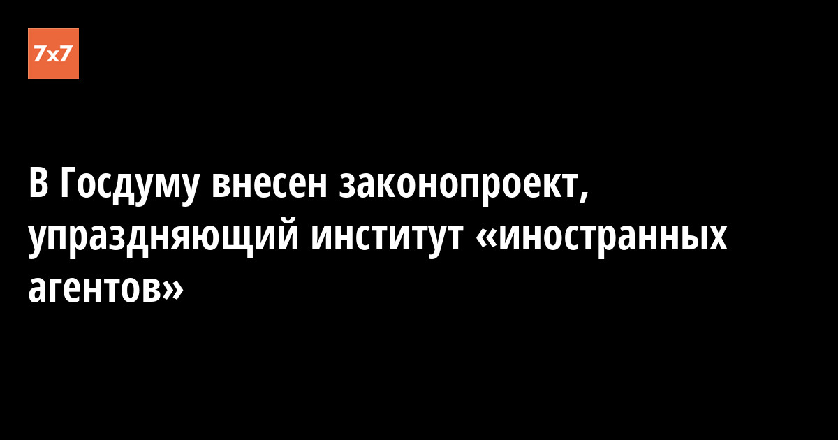 В Госдуму внесен законопроект, упраздняющий институт «иностранных агентов»