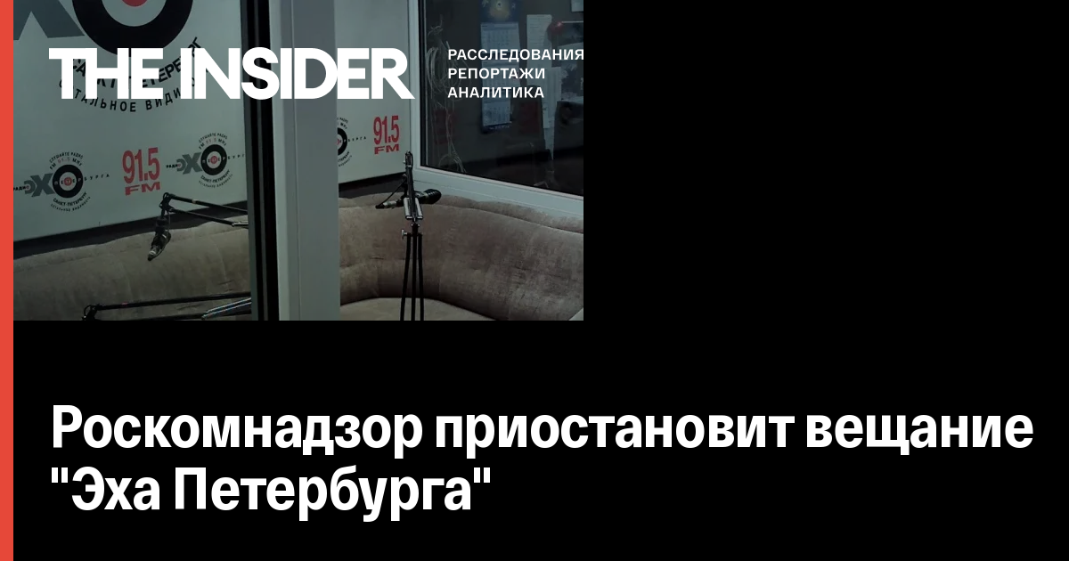 Роскомнадзор подготовил приказ о приостановке действия вещательной лицензии радиостанции «Эхо Петербурга», пишет «Интерфакс» со ссылкой на пресс-секретаря ведомства Вадима Ампелонского.