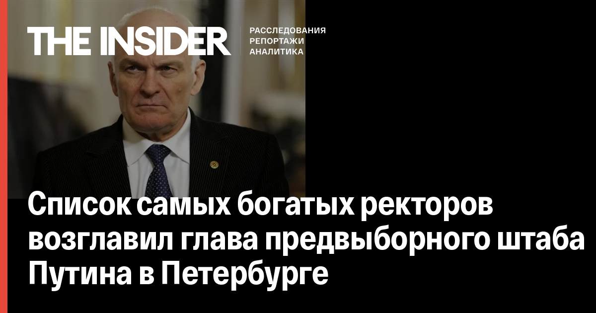 Список самых богатых ректоров возглавил глава предвыборного штаба Путина в Петербурге