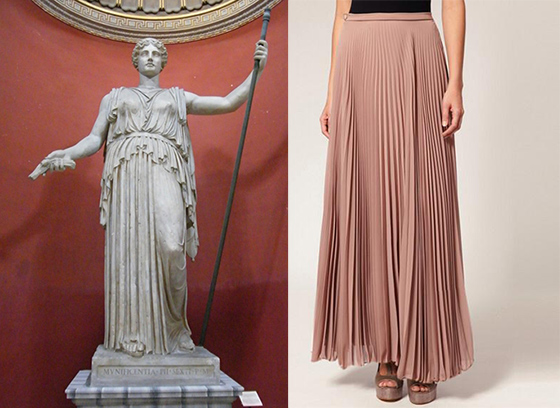 Анализируя мраморные драпировки античных статуй, Холландер рассматривает формулу «одежда — часть быта» как ошибочную. А термин «реализм» — как самообман критиков. Драпировка не могла бы выглядеть в реальной жизни как на статуе, но именно так начала выглядеть плиссированная одежда в век технологичных тканей. Не реальность вдохнула жизнь в поле художественных объектов, а они, как в фантастическом фильме, материализовались в современном мире.