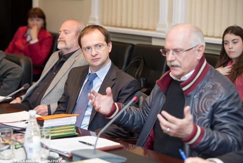 © Пресс-служба Министерства культуры РФ Владимир Хотиненко, Владимир Мединский и Никита Михалков на заседании оргкомитета празднования 95-летия ВГИКа, май 2014 года Министерство культуры разрешит показывать фильмы с нецензурной лексикой на всех российских фестивалях, но запрет мата в кинопрокате отменять не собирается.