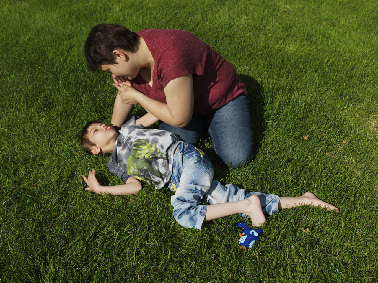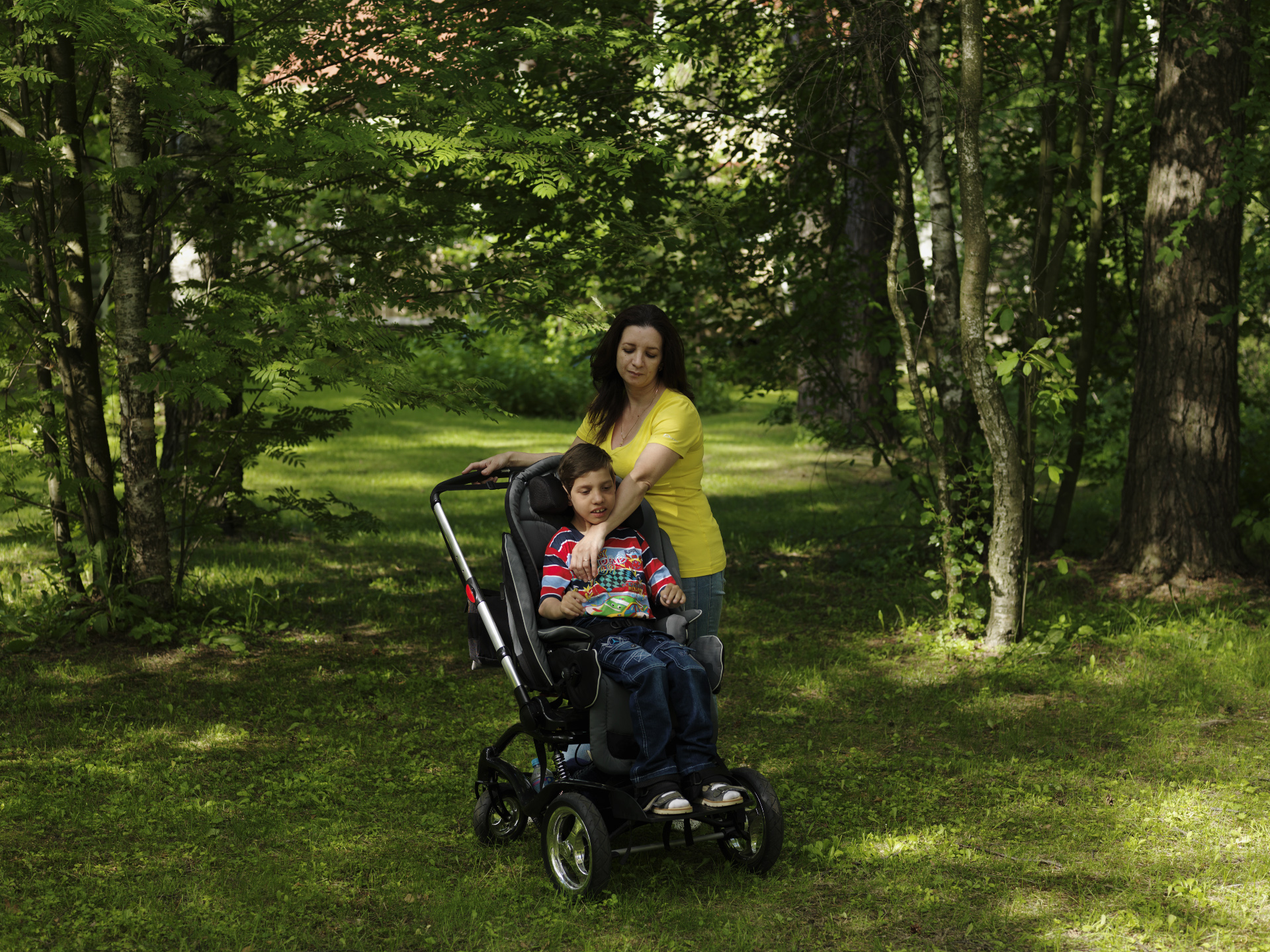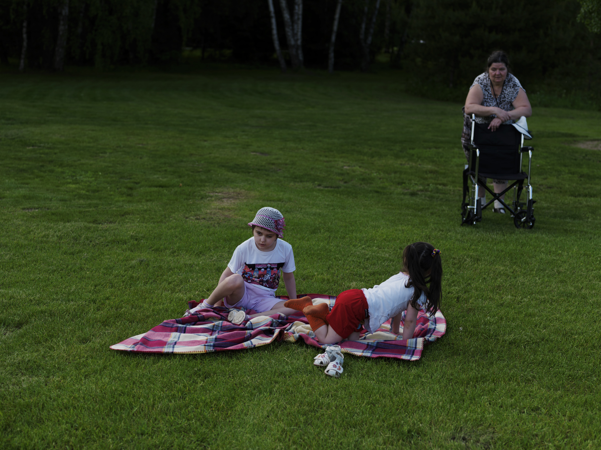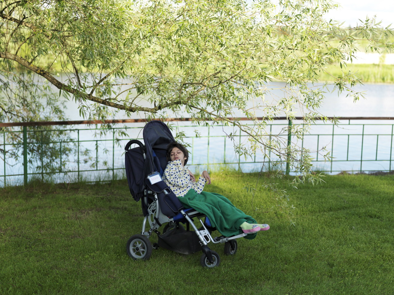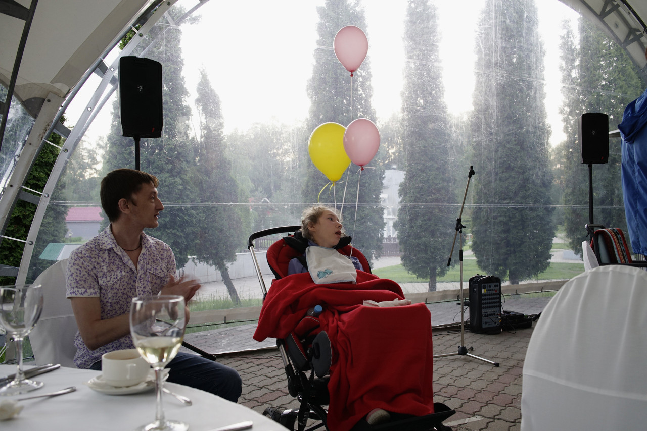 У сестры Гриши, Ксюши, СМА первого типа, она много месяцев пролежала в реанимации, но потом ей собрали деньги для того, чтобы купить все необходимое для реанимации на дому, и она вернулась домой с собственным аппаратом ИВЛ. В лагерь она поехать не смогла. У ее брата Гриши, к счастью, более легкий тип СМА, и он рассекал по лагерю на электроколяске и участвовал в играх наравне с другими детьми.