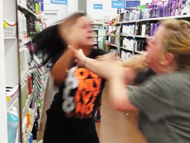Добавим, что это не первый за последние месяцы случай, когда американки сходятся в рукопашной во время шопинга в гипермаркетах Walmart. В феврале аналогичное происшествие сняли в Дир-Парке в Техасе.