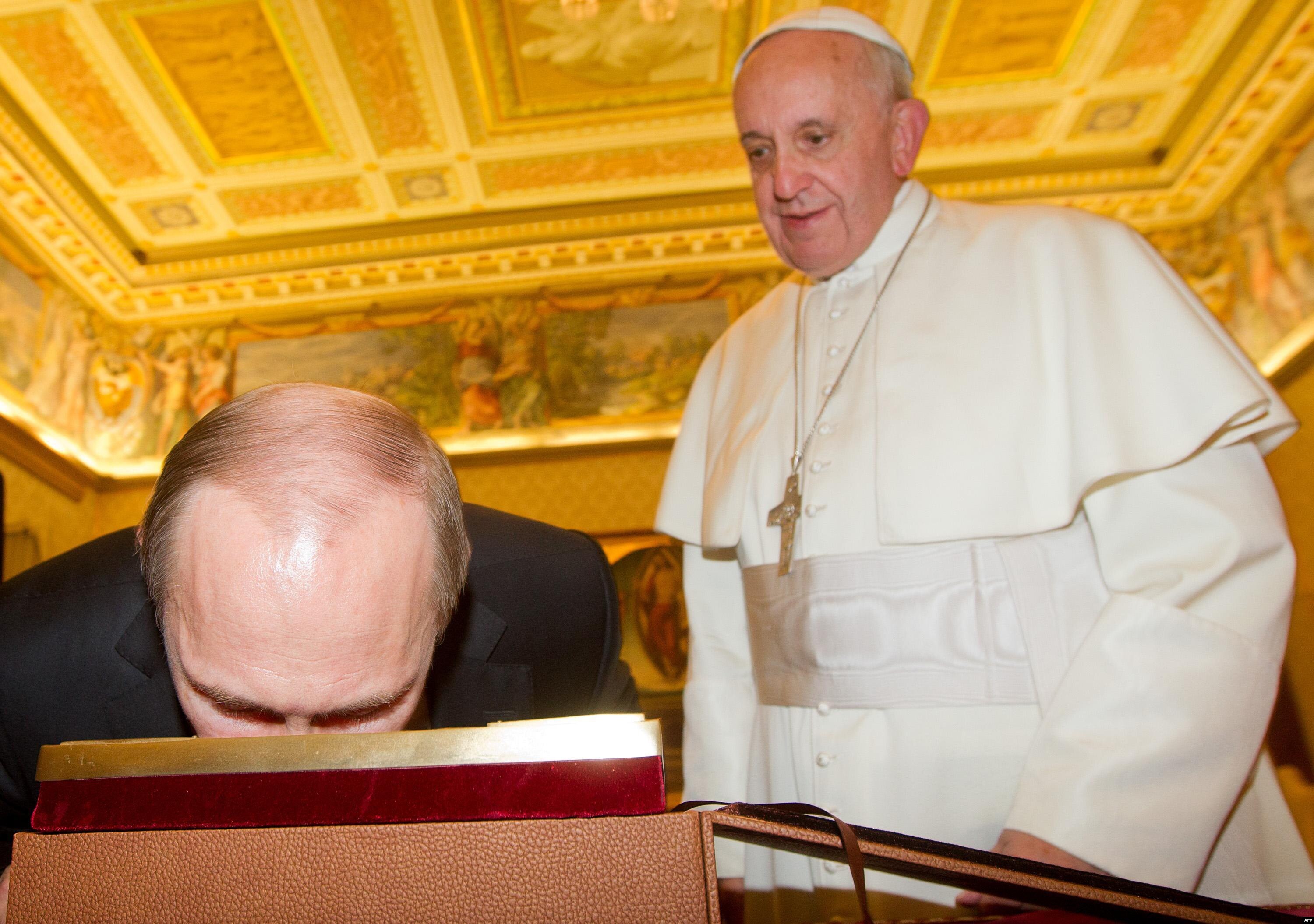 – Замечу (к вопросу об уважении), что на предыдущую встречу с Франциском российский президент, по своему обыкновению, опоздал – почти на час, но папа проявил выдержку и время общения с гостем из Москвы не сократил... Известно, что позиция Ватикана относительно конфликта на Украине спокойнее, чем позиция большинства западных правительств. Следует ли ждать, что во время этой встречи Владимир Путин услышит от папы Франциска библейские заповеди вроде "не укради" или "не убий"?