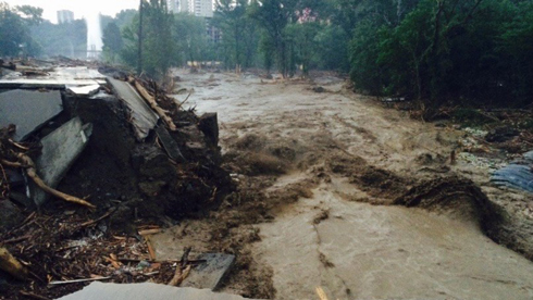 В ночь на воскресенье, 14 июня, затопило центральные районы города, прилегающие к набережной вдоль Куры и к ущелью, где протекает горная речка Вере. Погибли не менее пяти человек, около 10 пропали без вести.