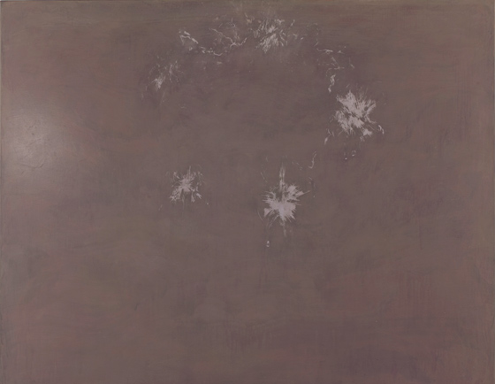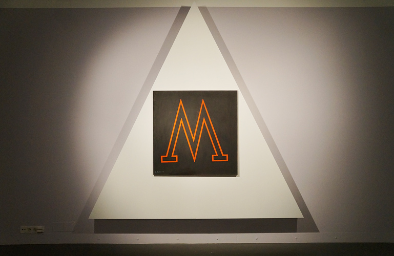 Моделью экспозиции для куратора стал храм розенкрейцеров — оттого пространство разделено проходами, вместе образующими крест, который венчает смотрящий вверх треугольник. На нем висит картина Дмитрия Гутова из проекта «Все, что я сделал до семидесяти, не считается» (2005), где изображена горящая в темноте кривоватая литера «М», логотип Московского метрополитена. В центре пересекающихся линий-коридоров — там, где у розенкрейцеров была роза, — располагается овальный стенд с серией «Изделия» (2006) Анатолия Осмоловского. Эти бронзовые скульптуры повторяют форму танковых башен, а тут они к тому же становятся своего рода лепестками. Остальные работы находятся в осях креста и угловых комнатах, этим крестом образованных.