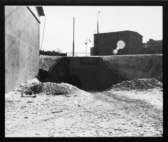 Андрей Монастырский. Из серии «Земляные работы». 2005. Courtesy of ООО «Арт Финанс» / Газпромбанк Серия черно-белых фотографий «Земляные работы» Андрея Монастырского сделана при участии Елены Елагиной в 1987 году, позже эти снимки были показаны на выставке Монастырского в Stella Art Foundation в 2005 году. Главный мотив — вдохновение, но не в туманно-поэтическом смысле, а вполне как у розенкрейцеров — то есть то, что в различных эзотерических текстах принято называть «духовным влиянием». Подход самого Монастырского, для которого разговор о сакральном и символах обычен, это подтверждает; и не важно, умело имитирует он подобный язык или действительно во все это верит — внутри любого нарратива начинает работать порождаемая им логика, как однажды доходчиво объяснил Умберто Эко. «Земляные работы» состоят из снимков мест и объектов, которые названы у Монастырского «инспираторами», причем не только его самого, но и других художников — Ильи Кабакова или участников группы «Коллективные действия». Это дома, эстакады, строительные площадки и прочее — «кондоры» и «павлины», как подразделяет их художник. Город в такой перспективе действительно становится схемой инициатического путешествия вроде описанного в каноническом для московского концептуализма китайском романе «Путешествие на Запад», хотя, конечно, у Монастырского эта история настолько фрагментарна в свойственном художнику и его кругу ключе, что всегда можно переиграть и отвергнуть любую интерпретацию. Но в рамках данной выставки эта фотосерия вопросов такого рода не вызывает.
