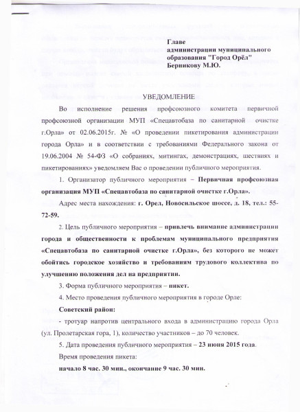 Пикет заявлен на 23 июня 2015 г. напротив горадминистрации.