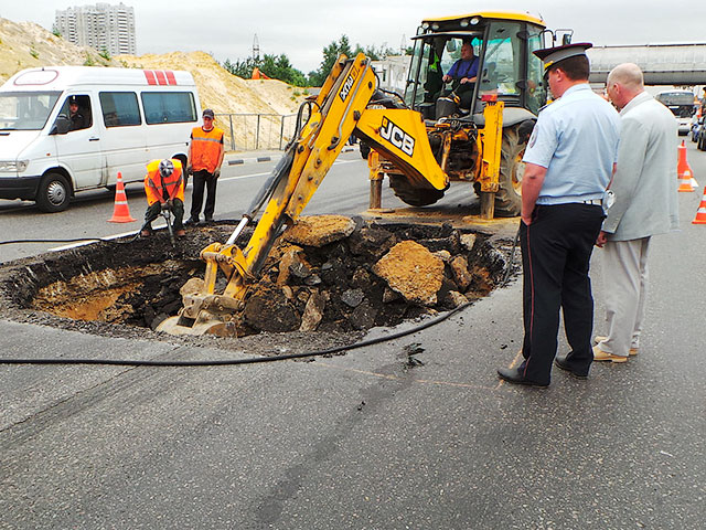 Провал грунта на МКАД объяснили дождями и сбросом воды