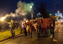 Акция прошла поздно вечером в субботу на пустынной набережной Тараса Шевченко. Активисты вышли на проезжую часть с растяжкой "Нет налогу на капремонт", зажгли файеры и начали скандировать лозунги, в числе которых были "Скажем дружно, скажем смело: ремонтируем систему!" и "Революция!".