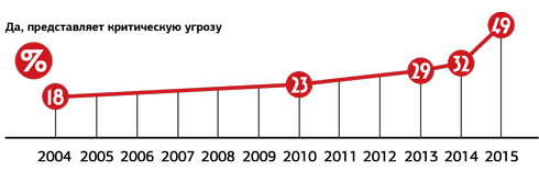 ПРЕДСТАВЛЯЕТ ЛИ РОССИЙСКАЯ ВОЕННАЯ МОЩЬ УГРОЗУ США?** Политика Кремля в отношении Украины, как и его политическая конфронтация с Западом, привели к тому, что по своему негативному восприятию Москва с отрицательным рейтингом (18 %) обогнала Пхеньян (15 %), Пекин (12 %) и Тегеран (9 %).