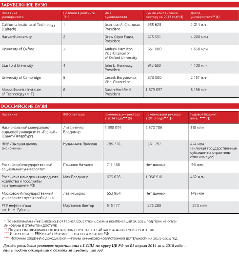 NT сравнил доходы самых обес-печенных российских ректоров с доходами их американских коллег — руководителей американских университетов из первой шестерки рейтинга Times Higher Education (THE).