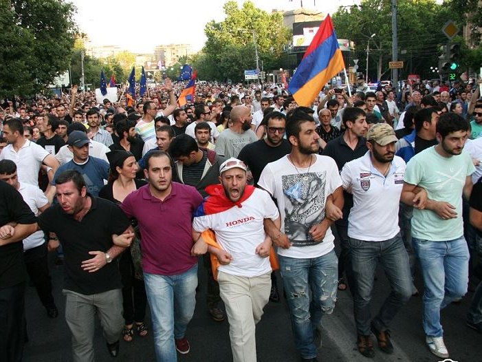 Участники акции протеста требуют отменить решение Комиссии по регулированию общественных услуг о повышении тарифа на электроэнергию. Согласно этому решению с 1 августа тариф подорожает на 6,93 драма за кВт.ч до 48,78 драма (примерно на 16,7% до 10,3 цента долларов).
