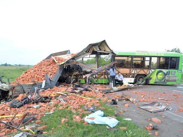 В результате аварии с участием рейсового автобуса и грузового автомобиля марки "КамАЗ", которая произошла 24 июня в 20 километрах от Омска, погибли 16 человек (водители обоих транспортных средств и 14 пассажиров автобуса). Еще 11 человек были отправлены в больницы. Автокатастрофа произошла на 26-м километре Сыропятского тракта возле села Богословка.
