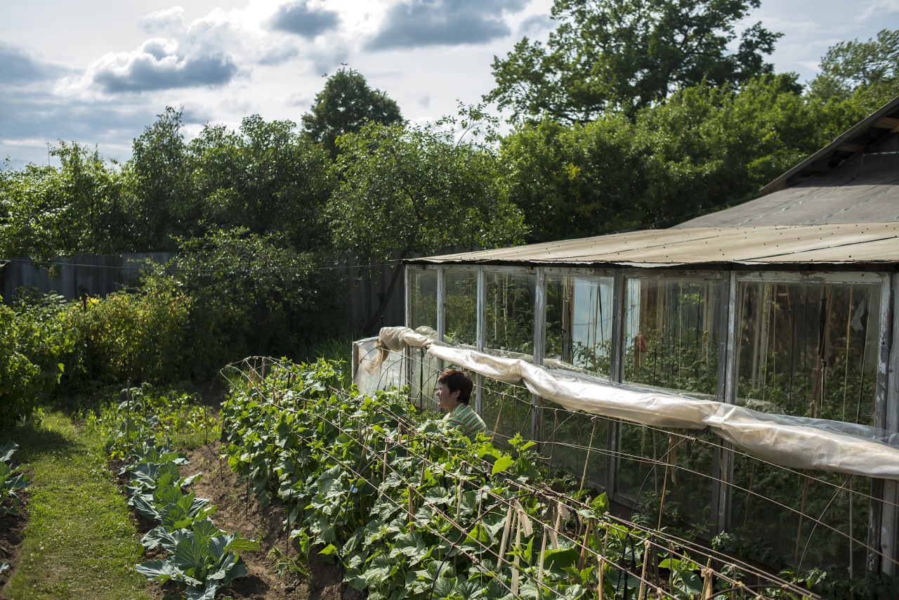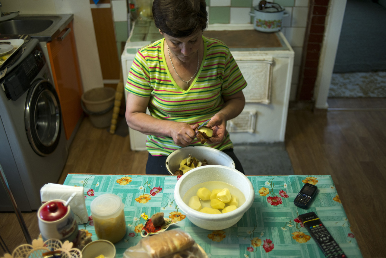 Мне жена помогает и дочка. Живем на свое хозяйство, я не работаю. Работу сейчас потерять легко, а найти трудно. Так и живем: продаем и сами едим молоко и мясо, яйцо, копаем картошку, растим морковку и лук. Многие сами в хлебопечке пекут хлеб, мы все-таки покупаем. В магазинах все очень дорого, живем только за счет огорода. Раньше я работал в печально известном ООО «Зерно Дон». Первый год нам платили очень хорошо, 18 000 рублей в месяц. На следующий год понизили зарплаты до шести — восьми тысяч. Когда снизили до четырех тысяч рублей, я уволился. Жены здесь редко у кого работают, хозяйство требует времени и нас кормит. Молоко мы продаем за 13,50, десяток яиц за 43 рубля. За месяц хозяйство приносит пять тысяч рублей. Сын у нас переехал в Москву, женился. Мы им, бывает, помогаем, мясо посылаем или что-то из домашних продуктов.