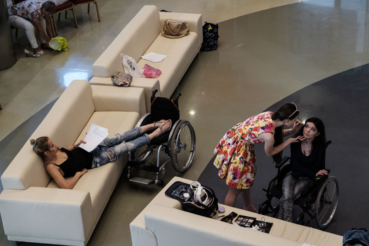 Россия. Новосибирск. 30.06.2015. Подготовка участниц перед конкурсом «Мисс Интеграция»Фото: Антон Карлинер для ТД Мы живём в тиши, в глуши, где нет доступной среды — Паше приходится меня таскать. Нет и перспективной работы. Переезд — не мечта даже, а цель. Хочу сдать на права, купить машину и водить. А остальное у меня вроде бы есть.