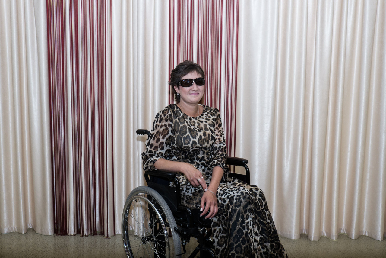 Россия. Новосибирск. 30.06.2015. Подготовка участниц перед конкурсом «Мисс Интеграция»Фото: Антон Карлинер для ТД Когда находится смысл жизни, тогда и всё остальное появляется. Я шью на заказ одежду — национальную, повседневную, детскую, платьишки всякие. Наряд на выступление я тоже сама сшила. Все его детали указывают на то, что я семейная, замужняя женщина. Я в нем уже участвовала в сибирской паралимпиаде творчества инвалидов и заняла первое место в номинации «хореография».
