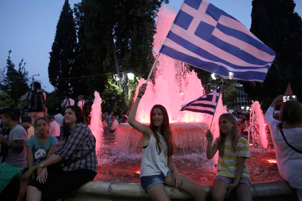 Чтобы отпраздновать результаты референдума, на улицы Афин вышли несколько тысяч человек.