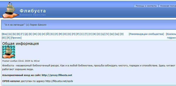 Некоммерческая электронная библиотека «Флибуста» была создана в 2008 году. Она финансируется создателями проекта и через пожертвования на добровольной основе. По данным «Флибусты», на сегодняшний день библиотека содержит более 310 тысяч произведений от 113 тысяч авторов. На сайте зарегистрировано свыше 620 тысяч пользователей. Чтобы получить доступ к книгам на ресурсе, авторизовываться необязательно.
