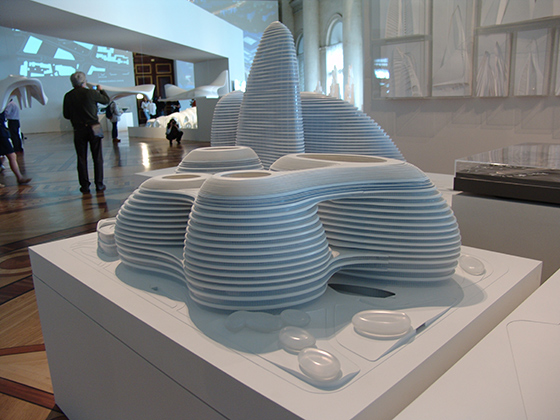 Экспозиционное решение полностью разработано Захой Хадид и ее соавтором Патриком Шумахером и представляет собой белоснежный павильон — некую динамичную структуру из спиралей и стремительных острых углов. Эта форма напоминает ранние проекты Хадид, в том числе ее первую постройку — пожарную станцию компании «Витра» (1990—1993).