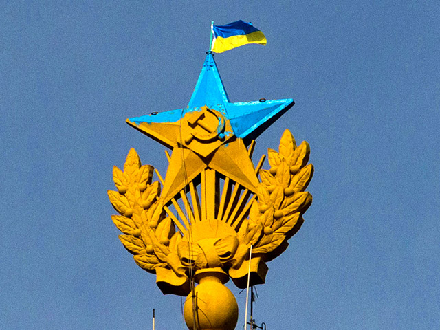 Акция с покраской звезды на шпиле сталинской высотки на Котельнической набережной в цвета украинского флага была проведена в ночь на 20 августа 2014 года. Ответственность за нее взял на себя украинский руфер Павел Ушевец по прозвищу Mustang Wanted, опубликовав фотографии того, как он красит звезду.
