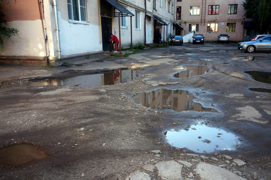 Даже в своем предвыборном качестве эта программа, конечно же, необходима многим дворам Йошкар-Олы. Главная проблема — состояние дорожного покрытия на внутренних территориях. Его практически не ремонтируют.