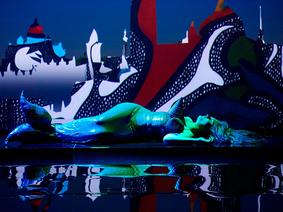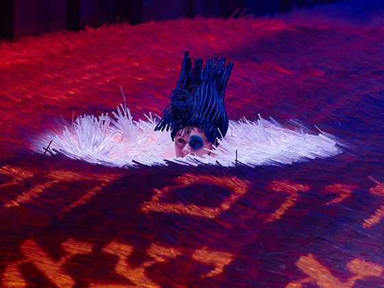 На разных сериях зал то вытягивался в подиум для показа мод, то застраивался более традиционным зрительским амфитеатром, то разнообразился минимальными движениями, сочиненными режиссером Юханановым и хореографом Андреем Кузнецовым-Вечесловым, то нет. Вместо поисков сюжета и вербального смысла лучше, мне кажется, привести формулировку музыкального руководителя театра Дмитрия Курляндского, придуманную им для этого проекта, — «манифест фундаментального инфантилизма». Психоделическое барокко перетекающих, светящихся, вертящихся и надувающихся декораций Степана Лукьянова, ставших навсегда узнаваемым, фирменным стилем «Сверлийцев», заселялось нахально-прекрасными костюмами Анастасии Нефедовой. Главная, совершенно невероятная составляющая проекта — это несколько часов свежесочиненной и весьма бескомпромиссной музыки, невозмутимо и суперпрофессионально исполненной музыкантами МАСМа, Questa Musica и N'Caged под управлением Филиппа Чижевского и с пылу с жару уже изданной на Fancy Music. За пять недель — шесть опер. Целая фабрика новых партитур, целая армия на все готовых солдат новой музыки.