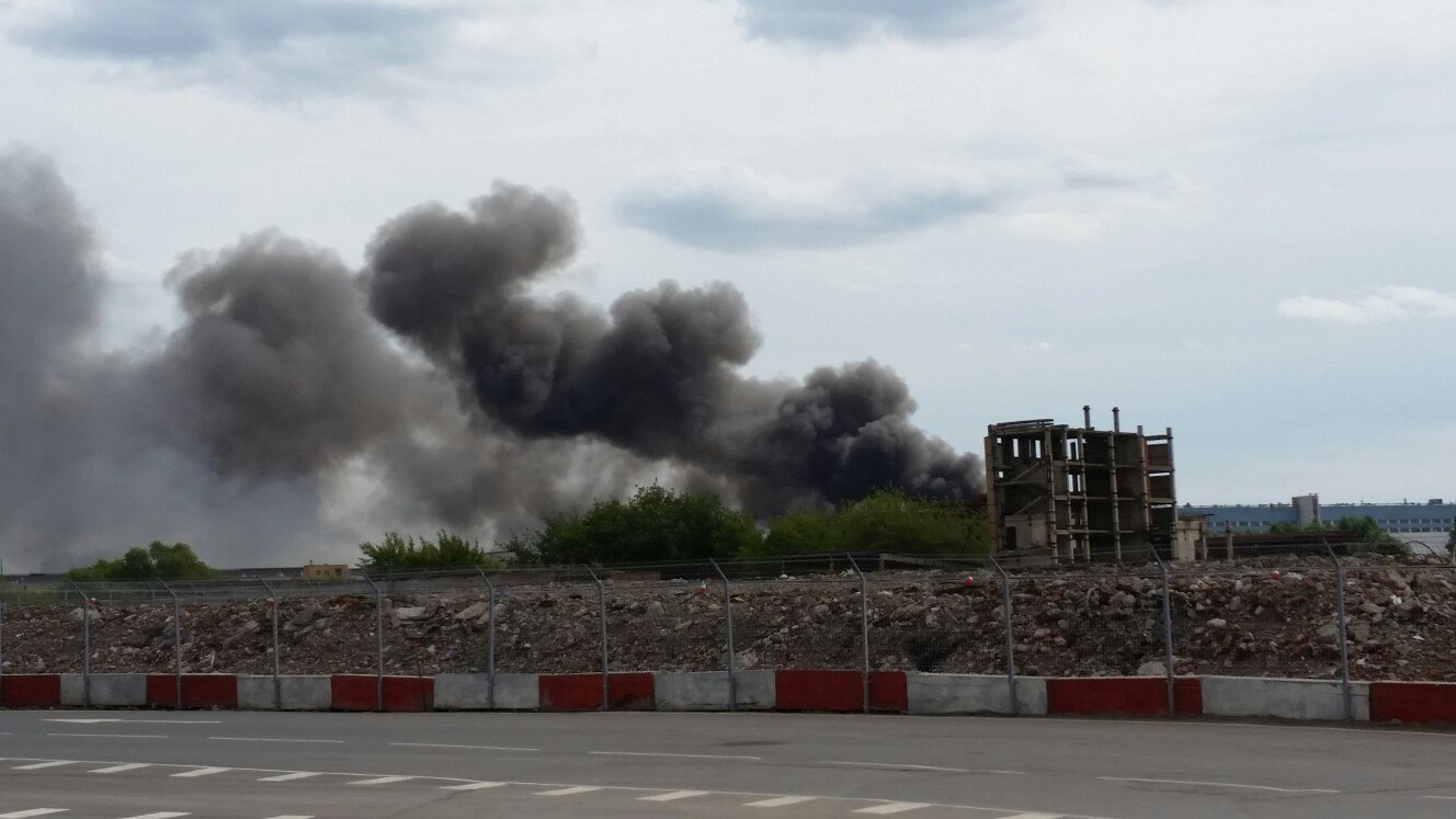 Ранее сообщалось, что горит склад с шинами, и черный столб дыма объясняется горением покрышек.