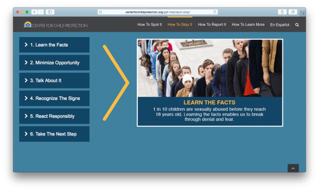 Такой подход призван открыть глаза на проблему детского насилия и помочь решить ее с помощью трех простых шагов: как определить, остановить и сообщить о насилии.