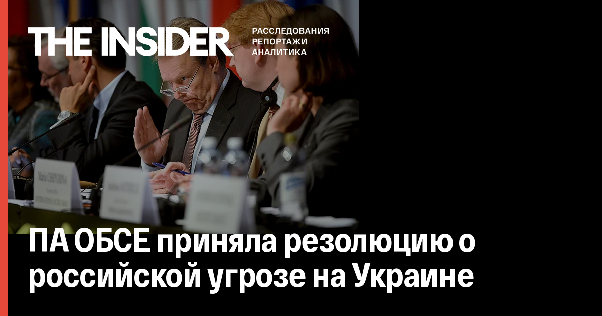 Парламентская ассамблея ОБСЕ приняла резолюцию, которая осуждает действия России на Украине, называя их актами военной агрессии, и призывает РФ отказаться от использования вооруженных сил на Донбассе, а также прекратить поставки оружия в непризнанные республики. Об этом сообщает «Интерфакс» со ссылкой на украинского народного депутата Сергея Высоцкого.