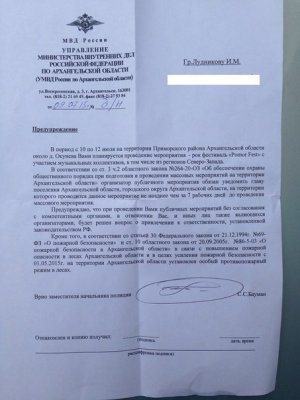 В Архангельской области отменен рок-фестиваль Pomor Fest, который должен был пройти с 10 по 12 июля на территории Приморского района. Причиной стало вмешательство местного Центра по борьбе с экстремизмом. Как сообщают организаторы на странице фестиваля в соцсети «ВКонтакте», утром 9 июля их вызвали в ЦПЭ. «По итогу беседы, в целях безопасности, фест будет отменен. Т. К. Трое из организаторов имеют условные сроки в случае проведения мероприятия сроки из условных превратятся в реальные. Так же к участникам/посетителям будут применены санкции В данный момент на месте феста дежурят правоохранительные органы и фиксируют всех приходящих», — говорится в сообщении, опубликованном вечером 9 июля (орфография и пунктуация оригинала сохранены). Там же вывешена копия предупреждения областного УВД одному из организаторов фестиваля Ивану Лудникову, в котором, в частности, говорится, что организатор публичного мероприятия «обязан уведомить главу поселения Архангельской области, городского округа Архангельской области, на территории которого проводится данное мероприятие не позднее чем за 7 рабочих до проведения массового мероприятия», в противном случае «будет решен вопрос» о привлечении организаторов к ответственности.
