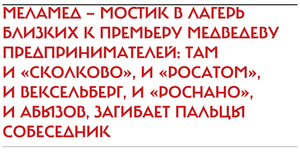 Плацдарм на осень Меламед не знает, почему его арестовали, уверены в его окружении. Чубайс, который сейчас фактически возглавил его защиту, тоже не понимает, что именно происходит с Меламедом, и поэтому строит эшелонированную оборону, обрывая телефоны высокому начальству и предлагая своим друзьям и партнерам писать письма в его защиту. Один из таких эшелонов — новый совет директоров «Роснано», в который на прошлой неделе вошли хорошо знающий Меламеда вице-премьер Аркадий Дворкович и партнер Меламеда Виктор Вексельберг. Это окопы вокруг компании, объясняет сотрудник «Роснано», но сказать точно, когда и при каких обстоятельствах они понадобятся, Чубайс и сам пока не может. Когда своих бьют, у Чубайса просто включается рефлекс, объясняет человек из «Роснано» (можно и не добавлять, что говорить под запись и с называнием имен отказываются абсолютно все): Чубайс будет защищать Меламеда до конца.