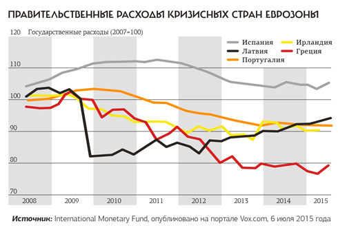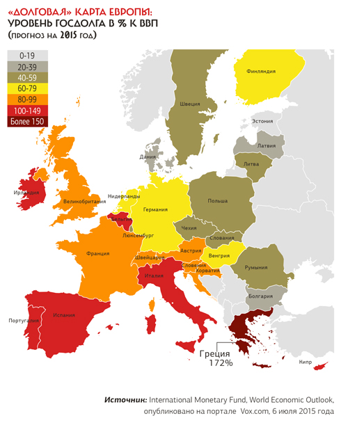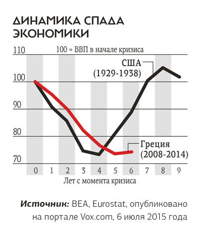 Кроме того, в Европе сложилась серьезная группа стран (Литва, Финляндия, Словакия, Голландия и отчасти Германия), в которых к выходу Греции из зоны евро относятся как к самому правильному варианту. Глава Еврокомиссии Жан-Клод Юнкер также заявил 7 июля, что детализованный план на этот случай у Брюсселя давно готов. Поэтому самое вероятное: по крайней мере. на протяжении ближайшего месяца никакого урегулирования проблемы по имени Греция не случится — и это превратит «временное» состояние в постоянное. В результате падение экономики Греции только в 2015 году окажется сравнимым с ее сокращением за все предшествующие годы кризиса.